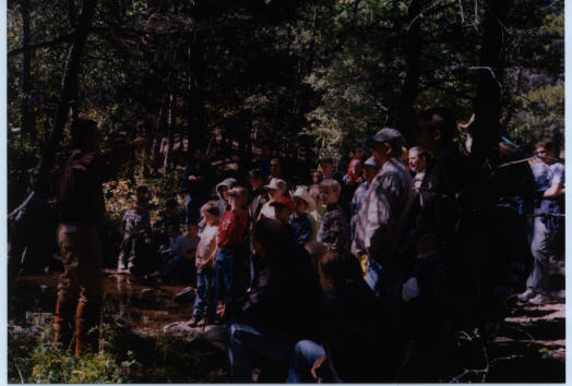 A typical historical-devotional presentation, Little Bear style!  (The "victim" here is a volunteer!)