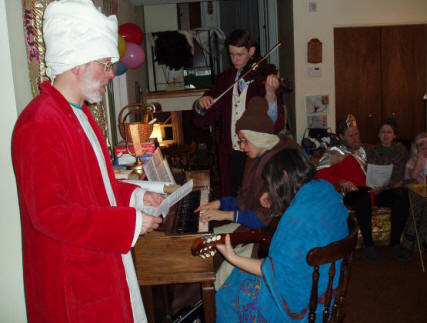 The "king's scribe" (in the red cloke) reads the