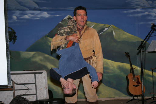 A typical historical-devotional presentation, Little Bear style!  (The "victim" here is a volunteer!)
